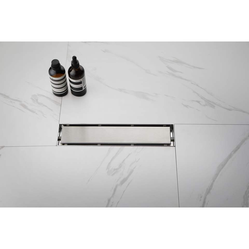 12-Inch DB Linear Shower Drain with Removable Cover 304 Stainless Steel Includes Hair Strainer Leveling Feet for Bathroom Use