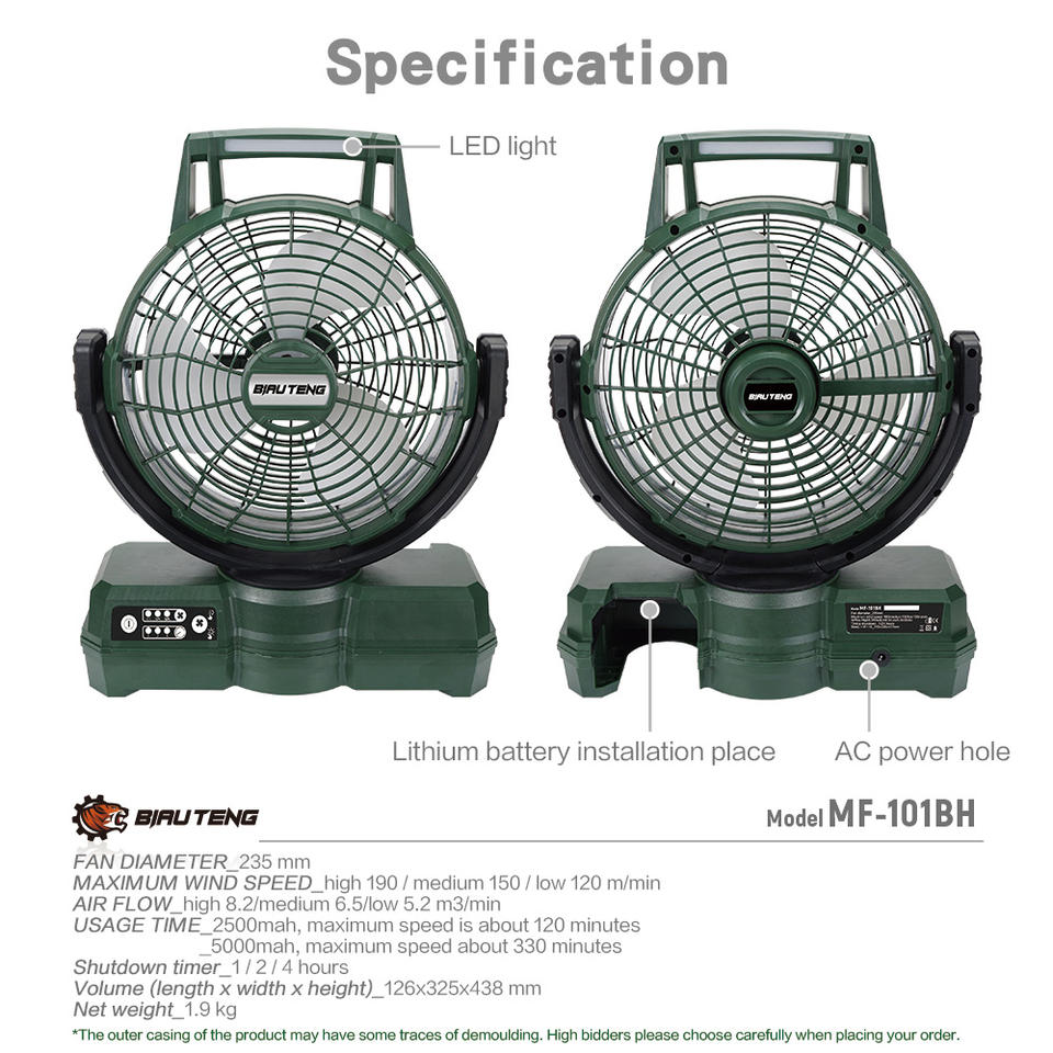 12-Inch Electric Swing Fan Light Strong Wind Lithium Battery 2500mAh 3 Rotary Vanes Car Outdoor Household RV Hotel Use Plastic