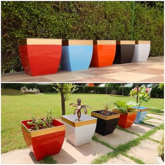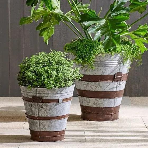 12-Inch Modern Galvanised Metal Planter Small to Large Iron Garden Supplies Decorative Flower Pots for Indoor & Outdoor Use