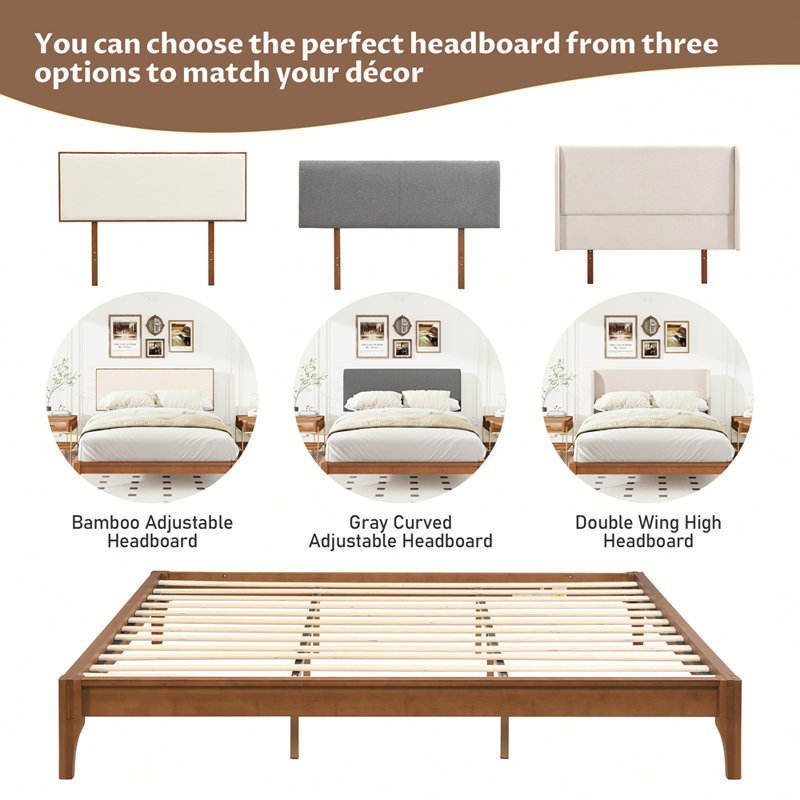 12 Inch Solid Dry Bamboo Wood Platform Bed Frame Extendable with Storage Easy Assembly No Box Spring Needed Wood Slat Support