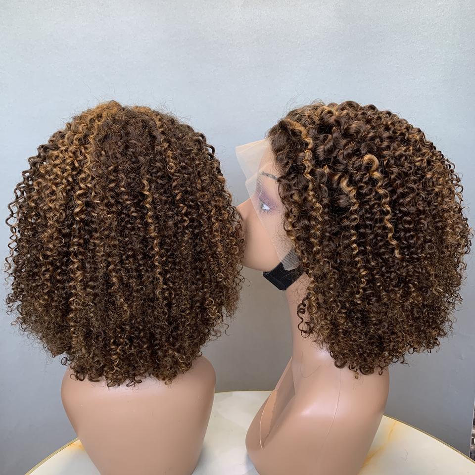 12 Inches Piano Color Kinky Curly Short Bob Wigs Human Hair Lace Front Wig Raw Vietnamese Hair