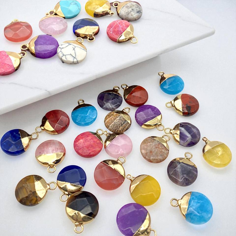 12 MM Round Yellow Chalcedony Gemstone Gold Electroplated Charms - Disc Gemstone Charm Pendant - 925 Silver Pendant DIY Jewelry
