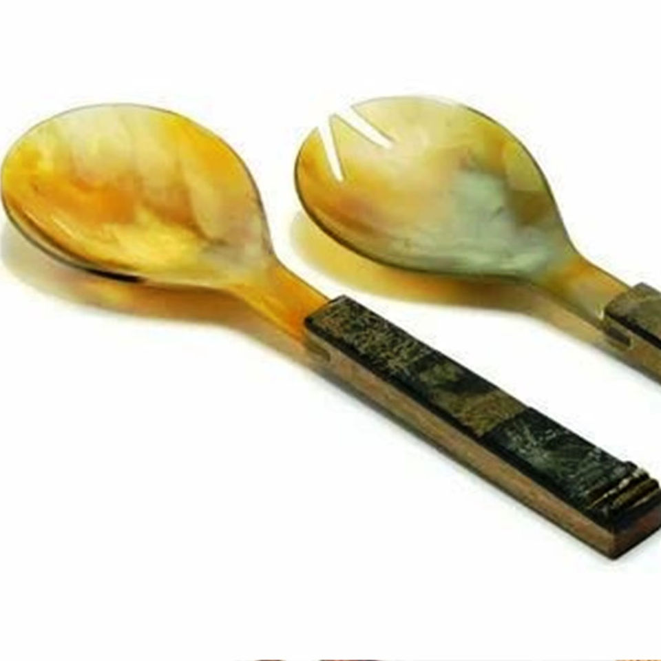 12 Natural Horn Handcrafted Salad Serving Servers with Decorated Handles Resin Eco-Friendly Dishwasher Safe Home Kitchen Set