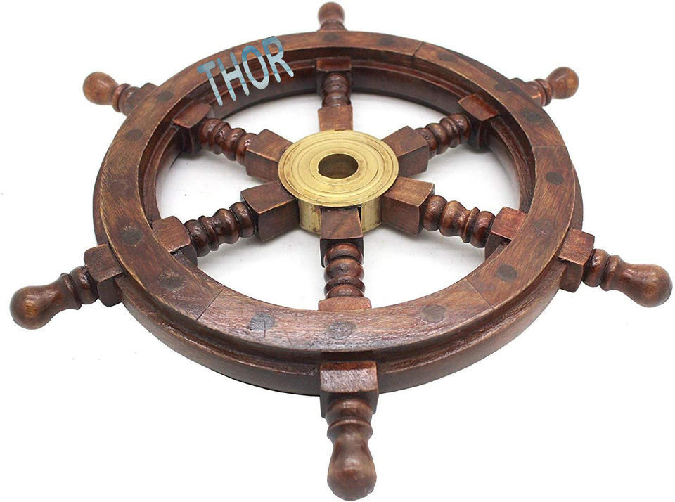 12'' Vintage Nautical Wall Decals Ship Wheel Wooden Maritime Boat Nutcrackers Brown Finish for Home Holiday Decorations