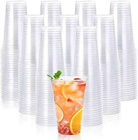 12 Oz Disposable Plastic Cups Tight-Seal Lids Clear Drink Cups Food Truck Supplies Reusable Smoothie Cups Excellent Takeout
