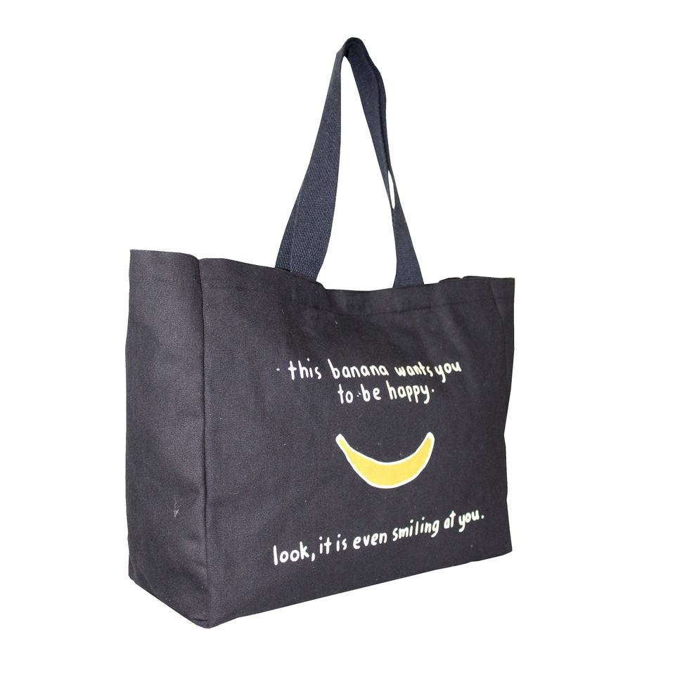 12 Oz Dyed Black Canvas Tote Bag with Custom Logo Print Soft Cotton Web Handle for Easy Carrying Cotton Shopping Bag