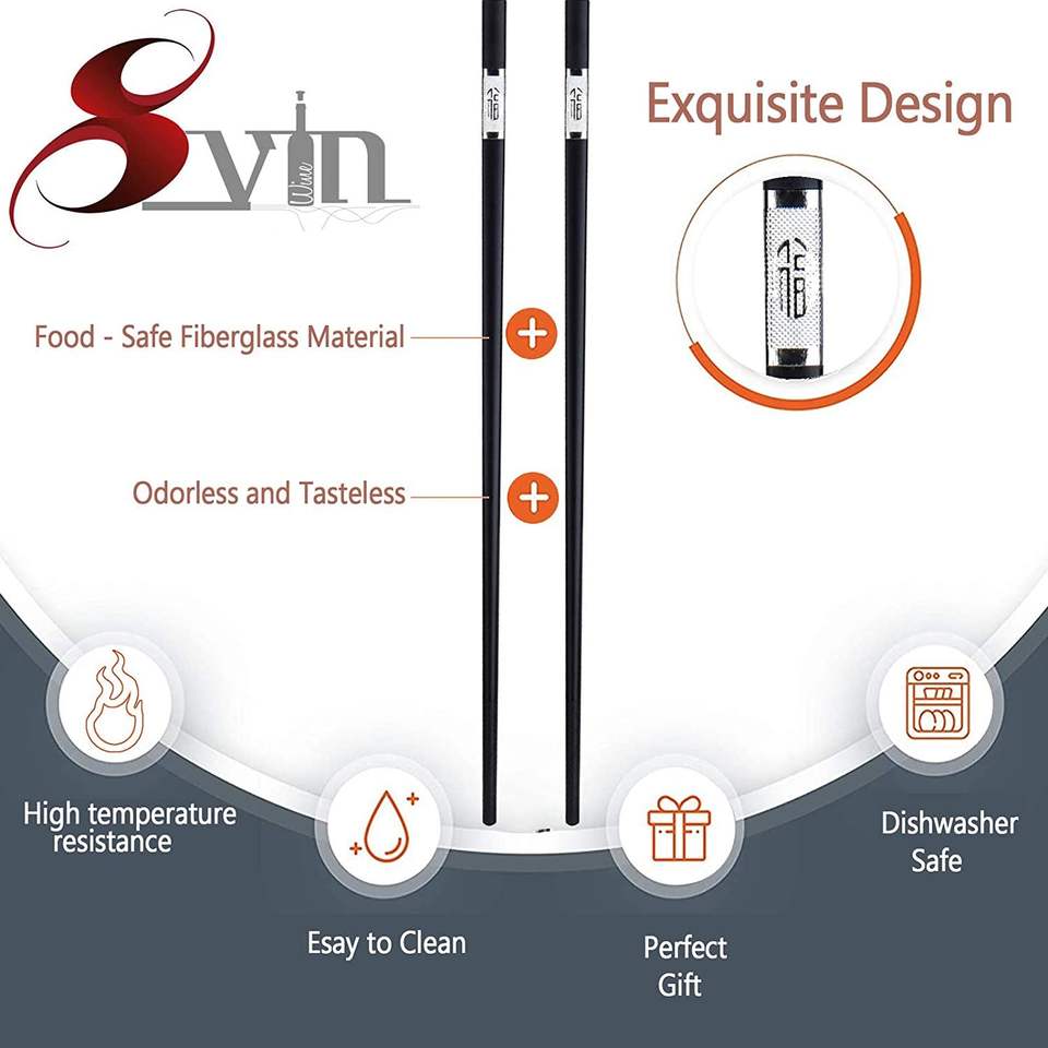 12 Pairs Non-Slip 9 1/2 Inch Durable Fiberglass Chopsticks Dishwasher Safe Reusable Chop Sticks Durable Case for Chinese Korean