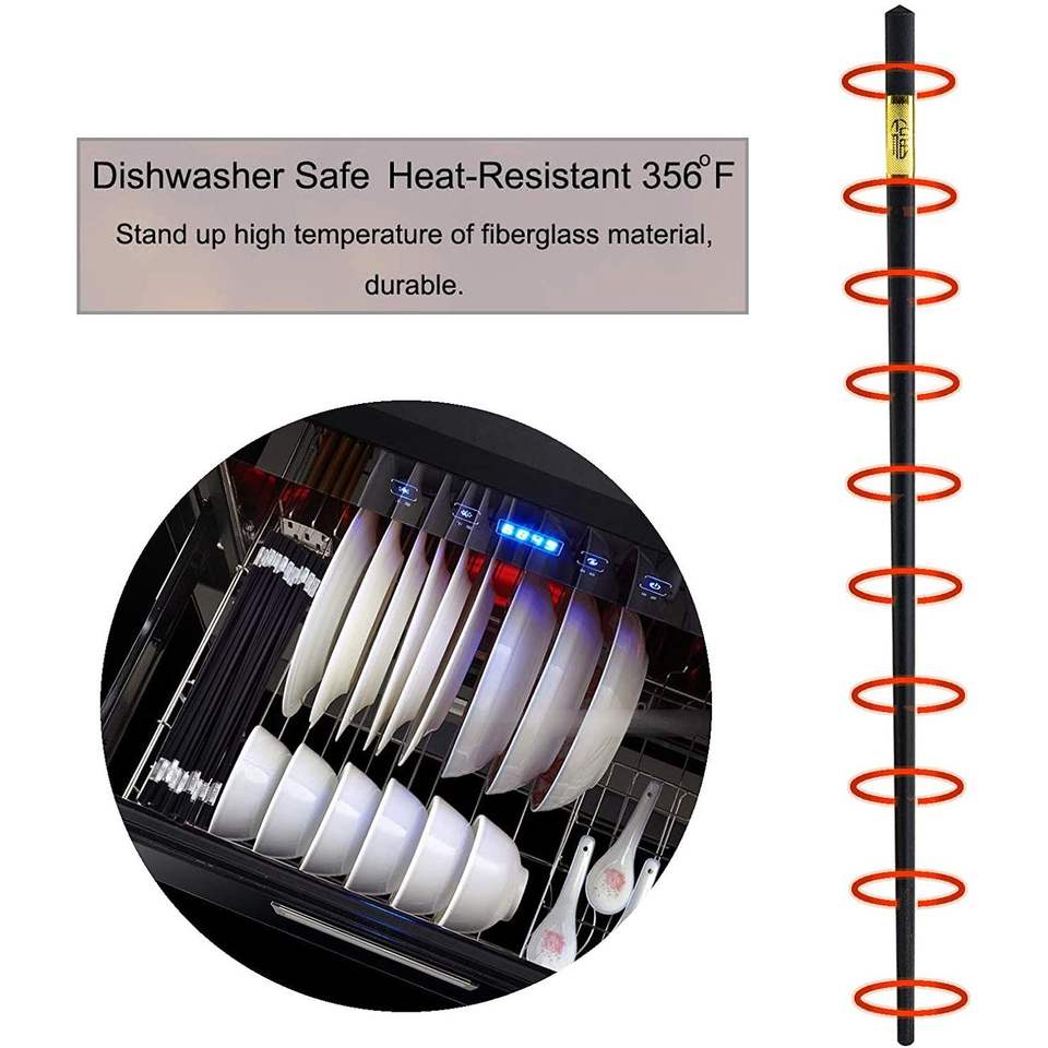 12 Pairs Non-Slip 9 1/2 Inch Durable Fiberglass Chopsticks Dishwasher Safe Reusable Chop Sticks Durable Case for Chinese Korean