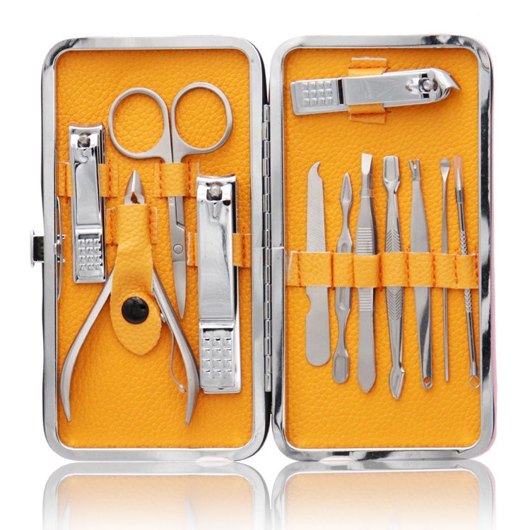 12 Pcs Black Stainless Steel Nail Clipper Cutter Trimmer Ear Pick Grooming Kit Manicure Set Pedicure Toe Nail a