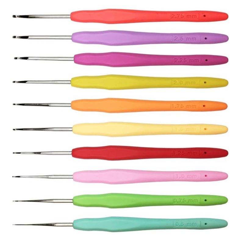 12 Pcs Metal Hook Ergonomic Soft Handle Portable Crochet Hooks Set Knitting Needles Multicolor 2.0Mm-8.0Mm