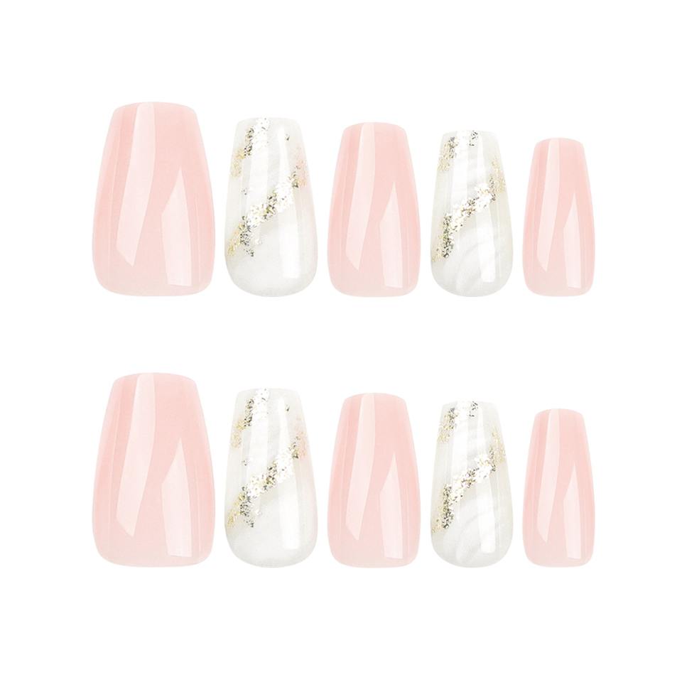 12 Pcs Pink White Ombre Gold Glitter Accent Half Cover Nail Design Acrylic Press Nails Artificial Fingernails False Nails Glue