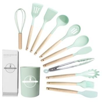 12-Piece Light Green Silicone Kitchen Utensils 500g Cooking Tool Set for Home Kitchen Use