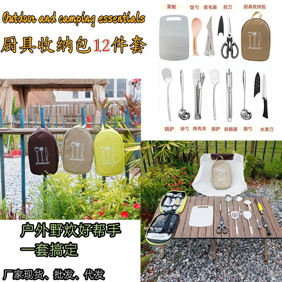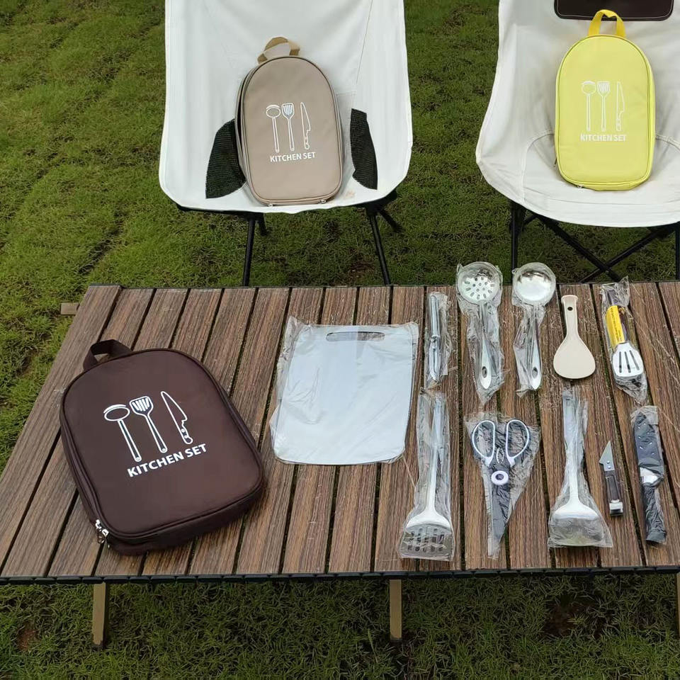 12-Piece Outdoor Kitchenware Set Portable Camping Cookware With Knives Forks Spoons Ladle For Picnic And Outdoor Use