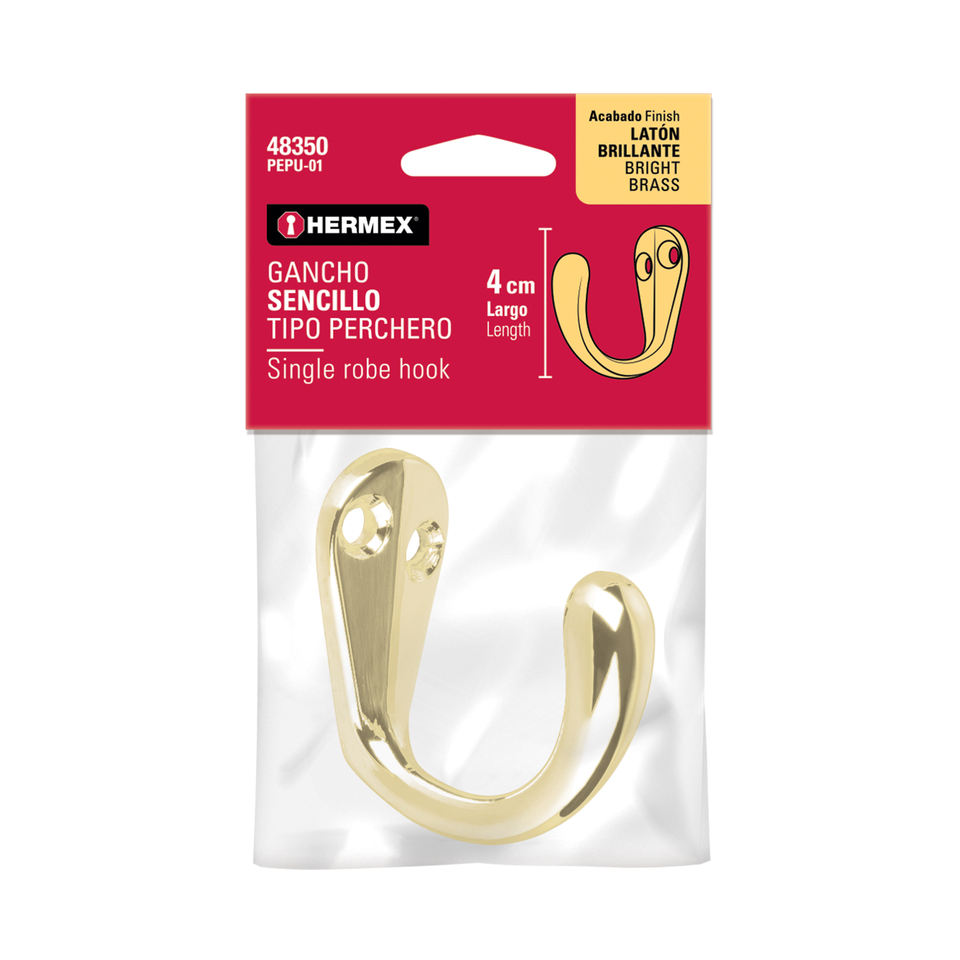 12 Single coat hook, polished brass, HERMEX