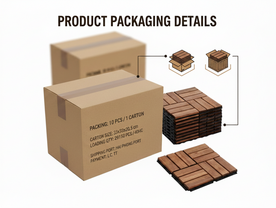 12 Slats Acacia Deck tile Natural Wood tile Interlocking Tile Made in Vietnam
