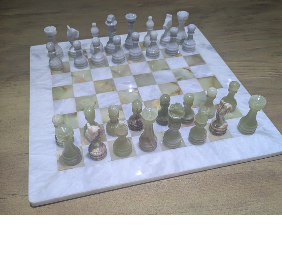 12" Square Marble and Onyx Chess Set Handmade Luxury Stone Chess Board with Natural Onyx Pieces