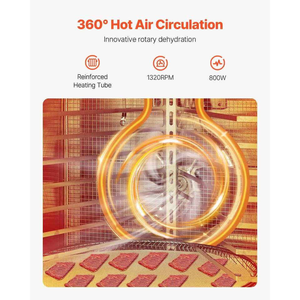 12-Tray Rotary Stainless Steel 800W Food Dehydrator Machine for Jerky and Fruit Drying