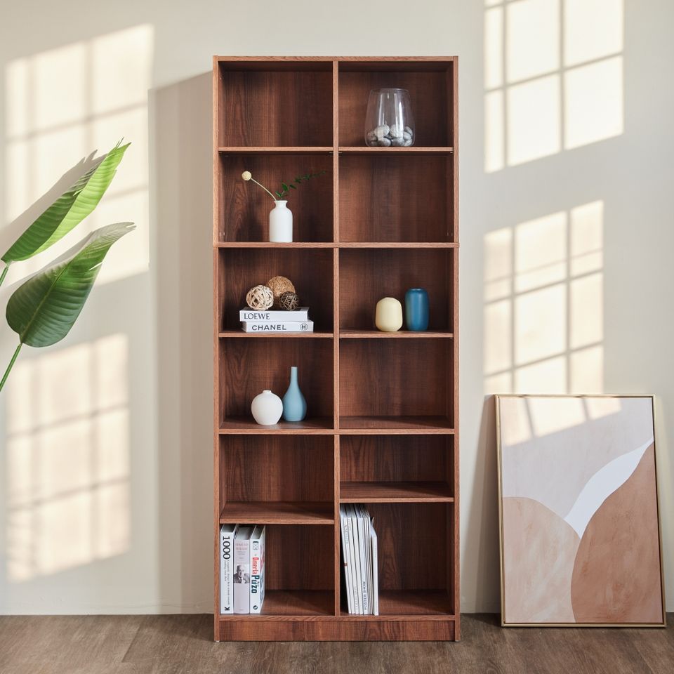 12-grid Solid-core Adjustable Bookcase Adopts E1 Board Walnut Color