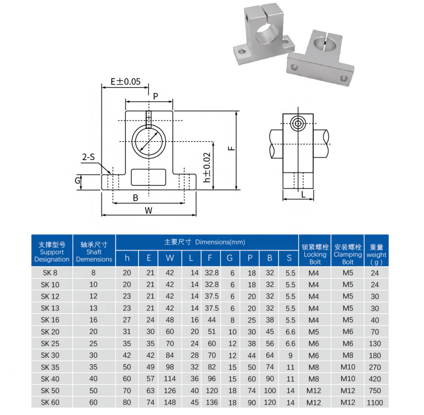Linear shaft support SK12