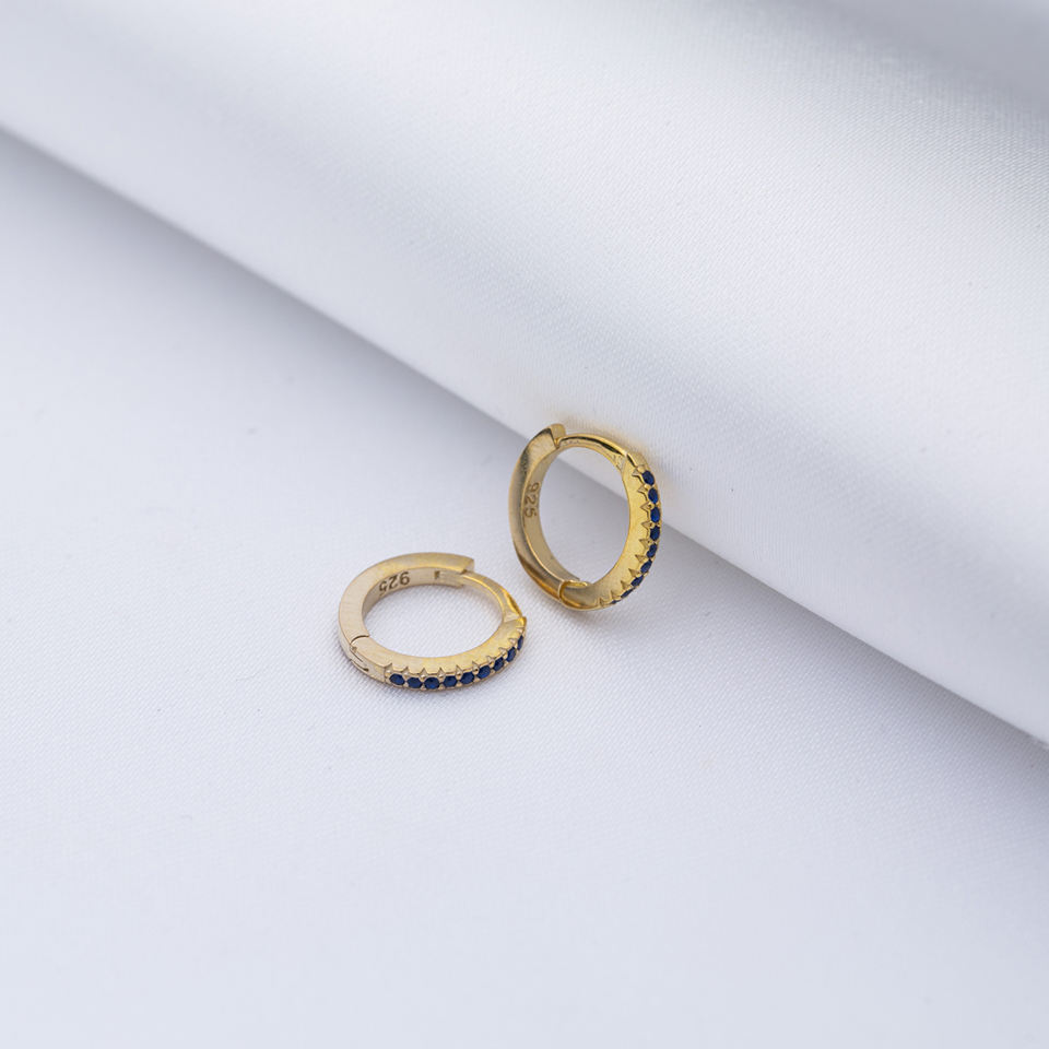 12 mm Sapphire Zircon Stone Hoop Earring Jewelry Wholesale Turkish Handmade 925 Sterling Silver