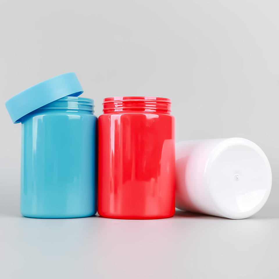 12 oz 16 oz solid color PET Round Wide Mouth packaging Jars 16oz blue Powder Butter Cream Jar With hot induction Seal