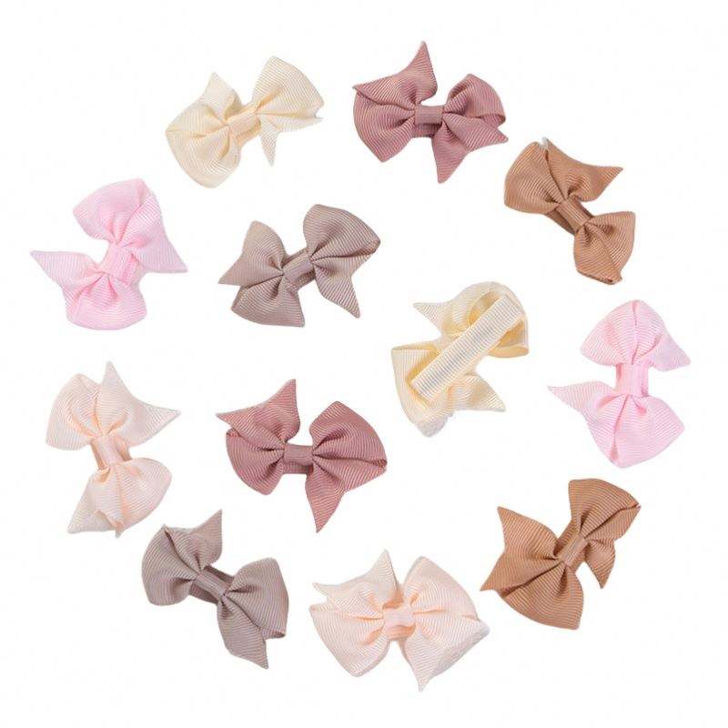 12-piece set cute hair products accessories baby bow hair clips solid color ribbon baby girl hair clips set