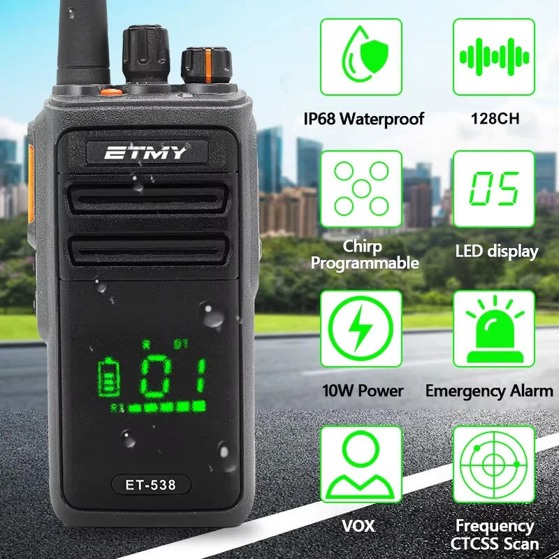 12W UHF VHF Waterproof Rugged Analog Walkie Talkie with Display 5km Range Emergency Alarm IP68 Security Use