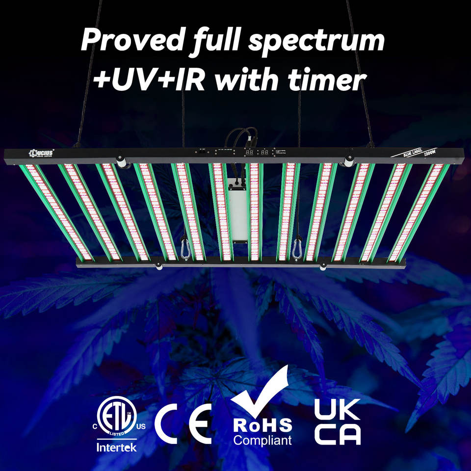 1200W UV IR LED Grow Light Energy Saving 50000hrs for Greenhouse 3.3 umol/J Covers 6x6ft for Hydroponics