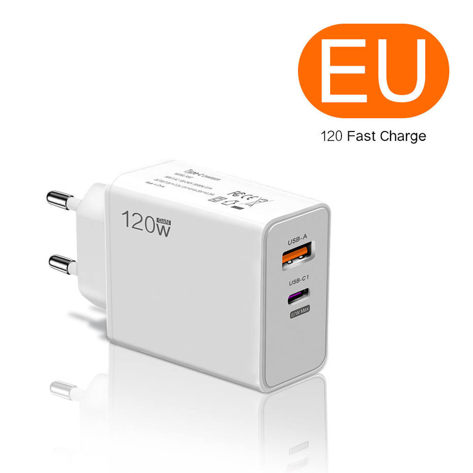 120W USB-A + USB-C Charger Adapter with EU/US/UK Plug
