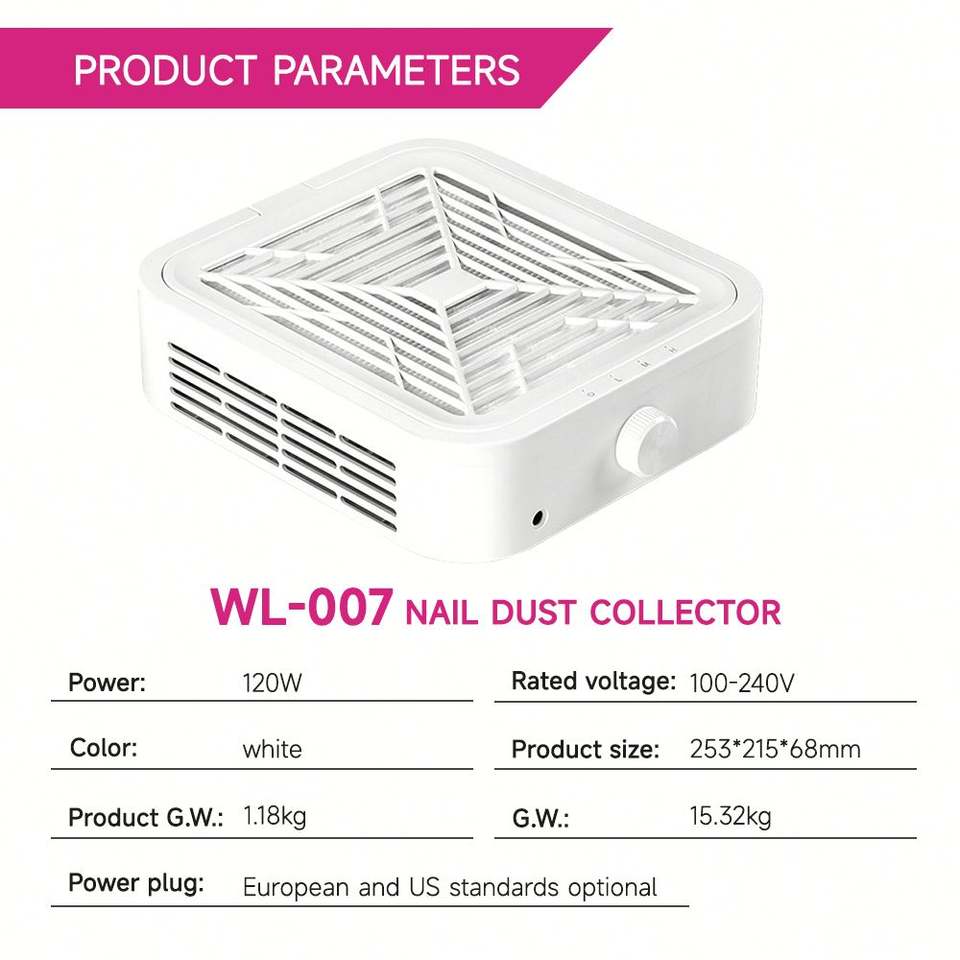 120W Turbo Brushless Nail Dust Collector High-Power Desktop UV Lamp Nail Dust Extractor with Strong Suction for Nail Art