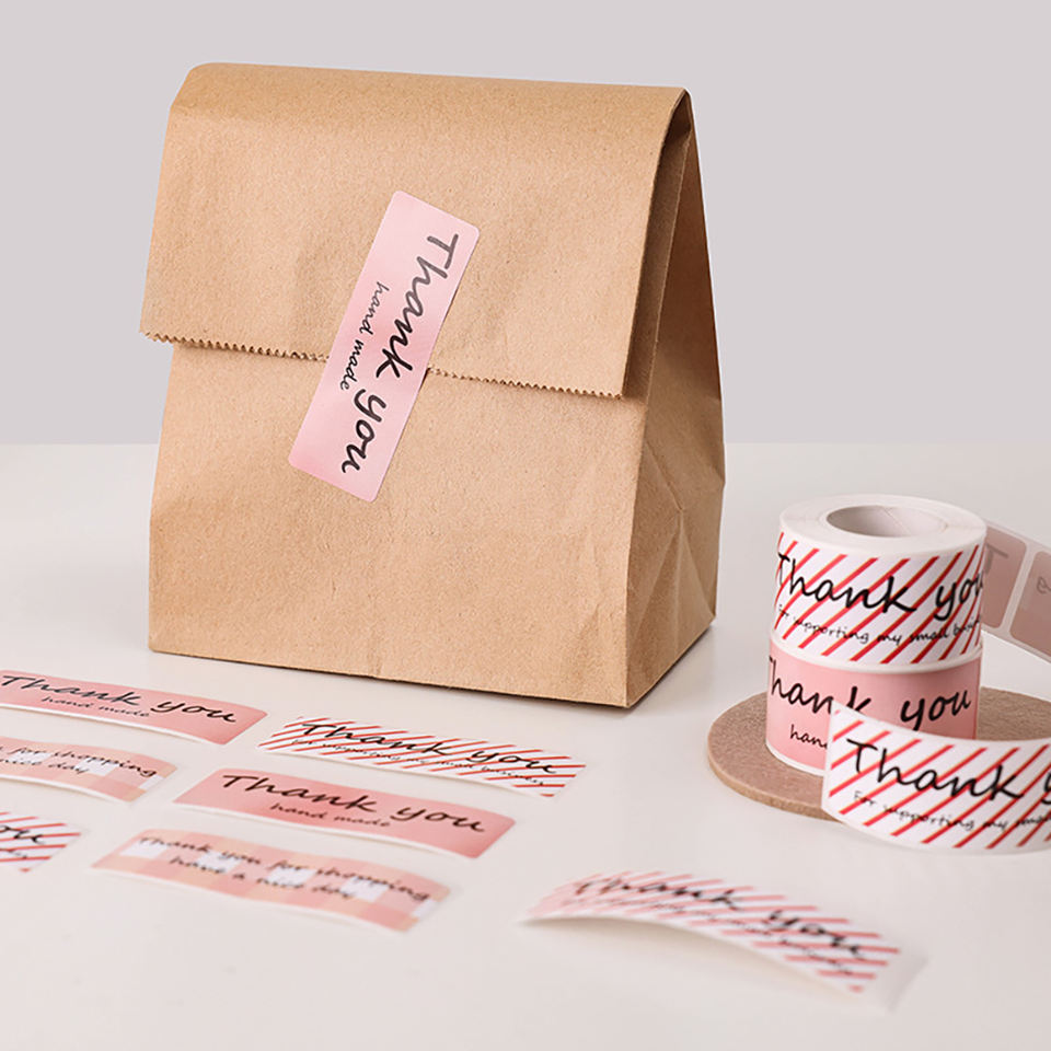 120pcs/roll pink Roll Flower Strip Thank You Cartoon Paper Stickers Eco Friendly Custom Size CMYK Printing Gift Box sealed