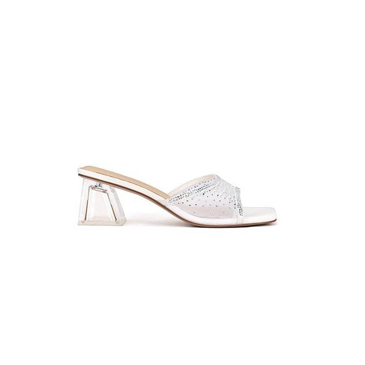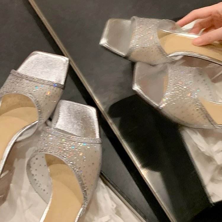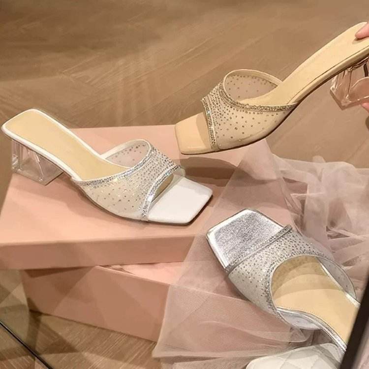 126 New Mesh Transparent Rhinestone High-heeled Shoes in Plus Size, Fashionable for Wearing on the Outside, One Foot Beach Shoes