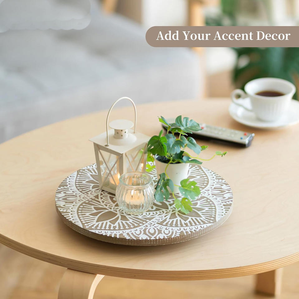 12Inch Acacia Wood Lazy Susan Turntable Decorative Rotating Centerpiece Tray Handmade Multifunctional Kitchen Countertop Modern