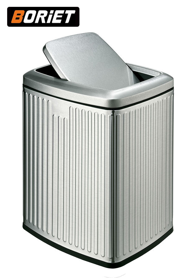 12L Indoor Office Kitchen Trash Cans Garbage Container Square Stainless Steel Open swing Top Trash bin hotel