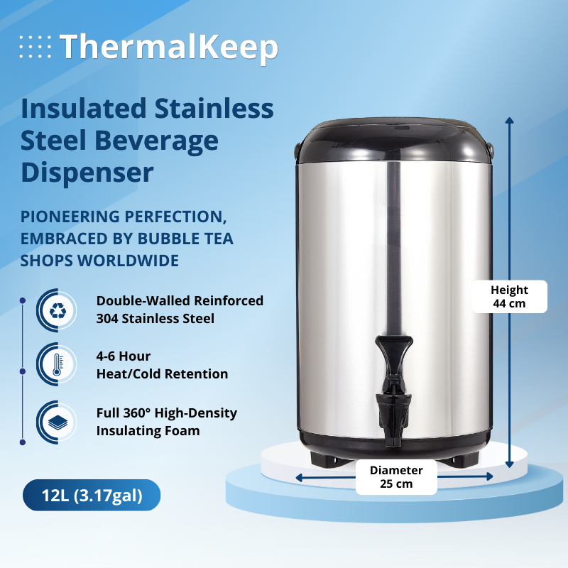 12L Portable Stainless Steel Insulated Drink Cooler Milk Tea Coffee Beverage Dispensing Bucket