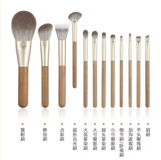 Product Name:12pcs Natural-color Wood Handle Makeup Brush Set