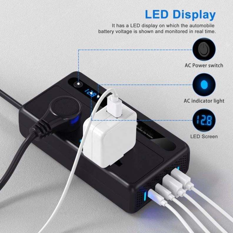 converting car's 12v power to 220v or USB to charge fan, mobile, etc.