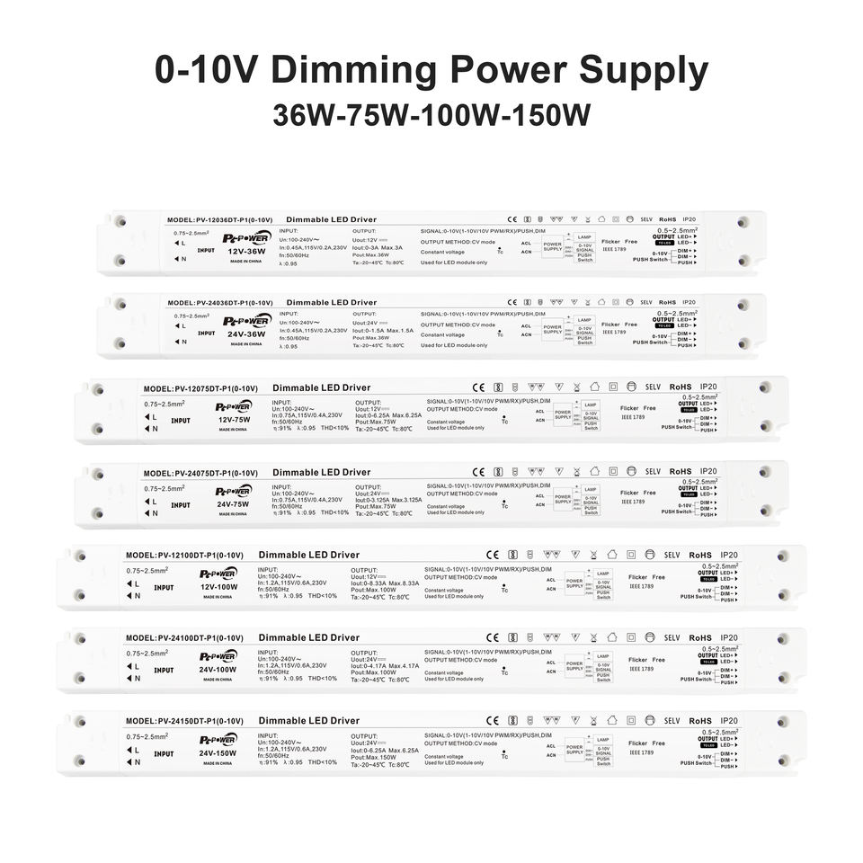 12V 24V 4 In 1 0-10V1-10V/10V PWM/Rx Dimmable LED Driver 36W-200W CV IP20 Indoor Plastic Case Led Power Supply Transformer
