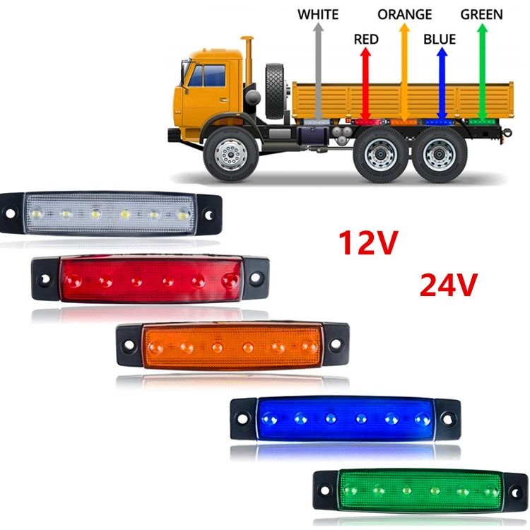 12V 24V 6 LED Car Waterproof Led Trailer Tail Side Marker Lights Red Side Marker Indicators Warning Lights for Boat Trailers