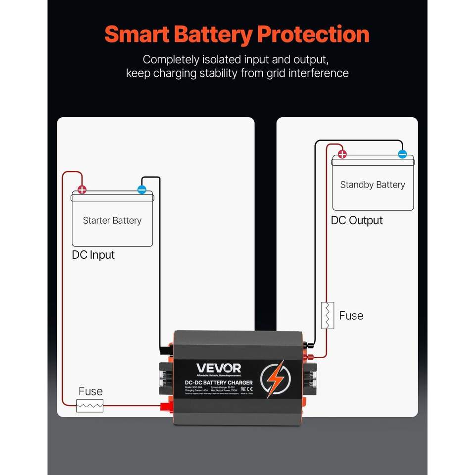 12V 60A DC to DC Battery Charger 750W for Lead-Acid and Lithium AGM GEL Cars Car Battery Charger