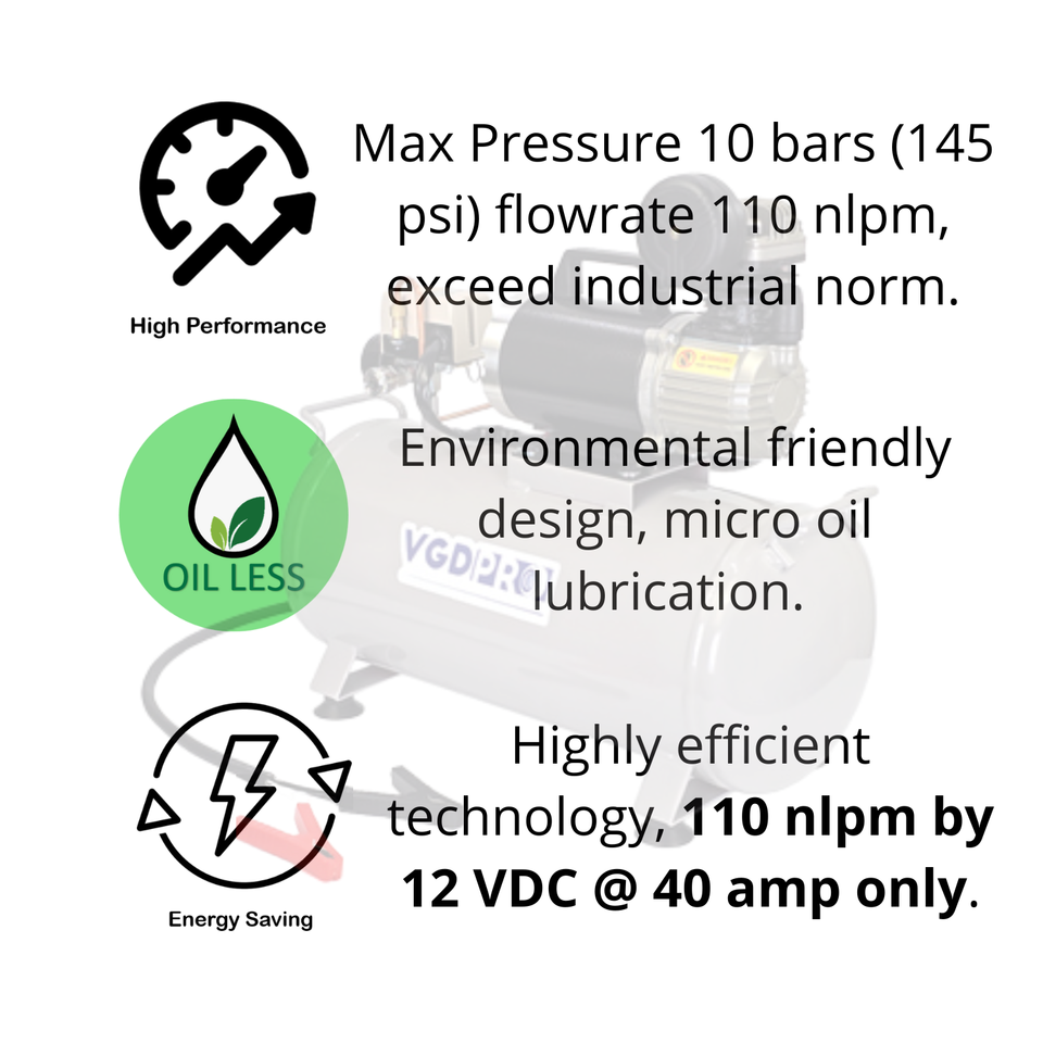 12V DC Offroad Road Assist Truck Tire Repair Heavy Duty Oil Less Air Piston Mini air Pump Air-compressor with 25 Liter tank