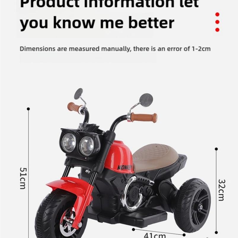 12V Electric Ride-On Car & Motorcycle for Kids Ages 2-4 Years with LED Lights USB Charging Plastic Construction 50KG Capacity