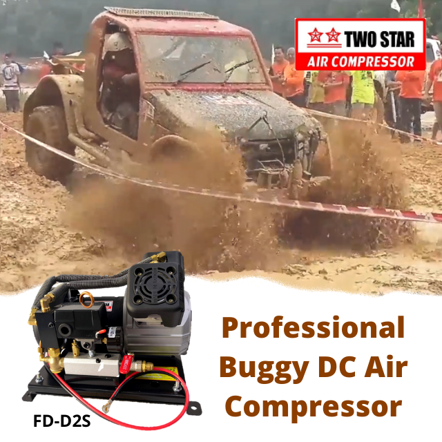 12V High Efficiency Weatherproof Long Duty Cycle DC Oil Free Professional Onboard Twin Piston Mobile Air Compressor Machine
