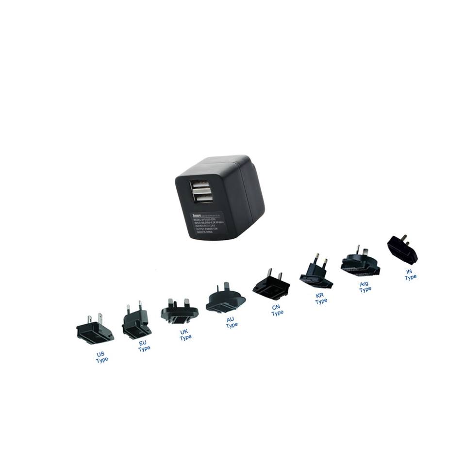 12W 5V/2.4A USB Travel Wall Charger OVP/OCP/OTP Protected Multi-Port Adapter for US EU UK AU CN KR ARG in Plug