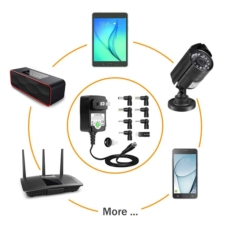12W Universal AC to DC Power Supply Adapter 3V-12V 1.5A 7 Tips OTP Protection for Mobile Phone