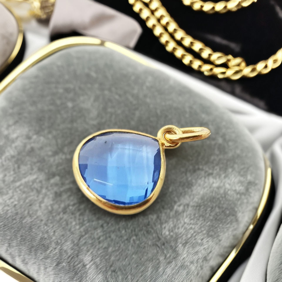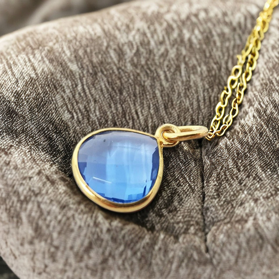 12mm Blue Topaz Quartz Heart Pendant, 925 Sterling Silver Bezel Setting, Handmade Birthstone Necklace Charm Elegant Jewelry Gift