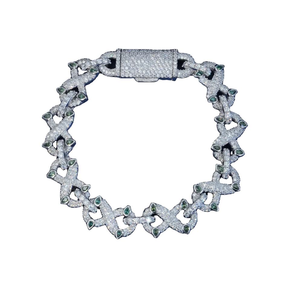 12mm Green Pear Moissanite Diamond Sterling Silver Handcrafted Infinity Link Elegant Cuban Micro Pave setting Unisex Bracelets
