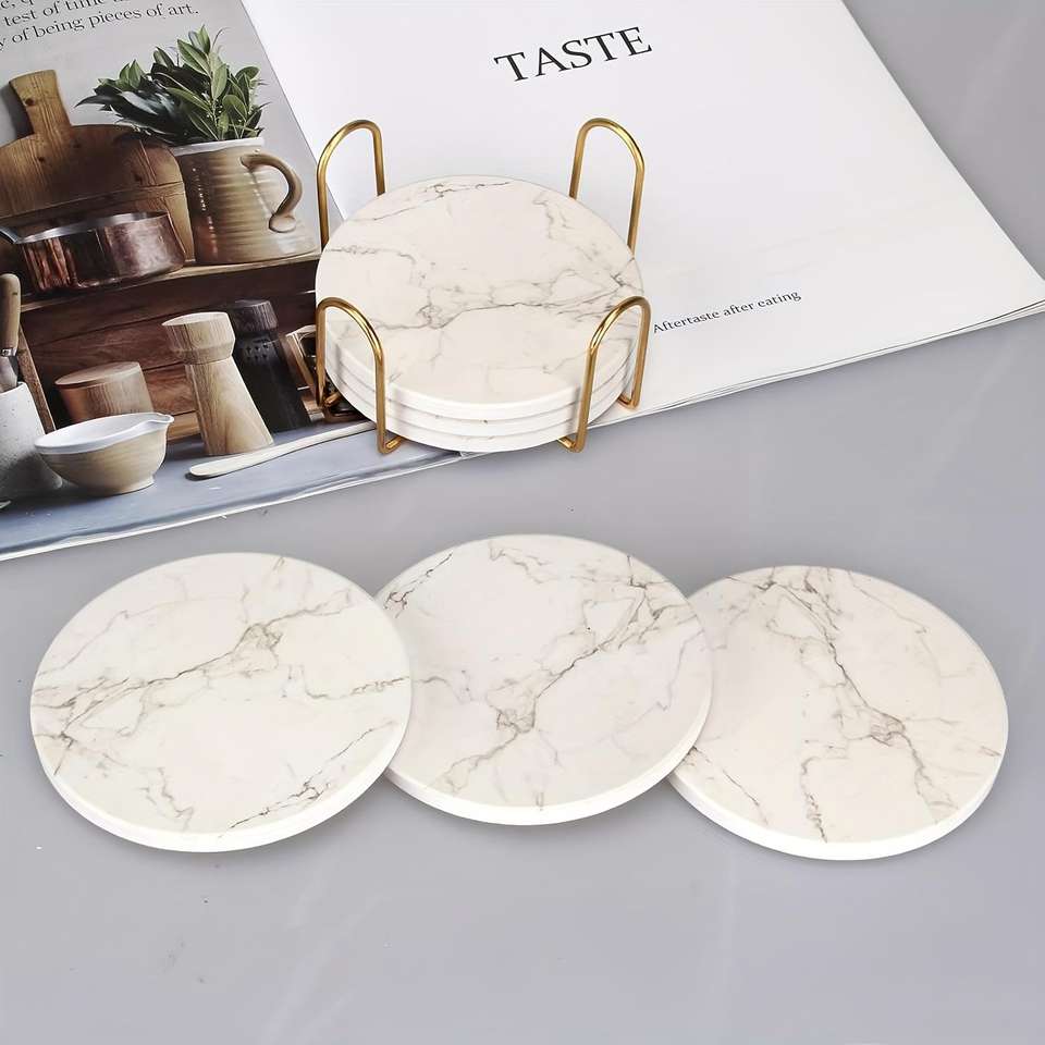 12pcs Ceramic Coaster Set White Marble Striped Anti-Slip with Golden Bracket Water Absorbing Promotional Coasters
