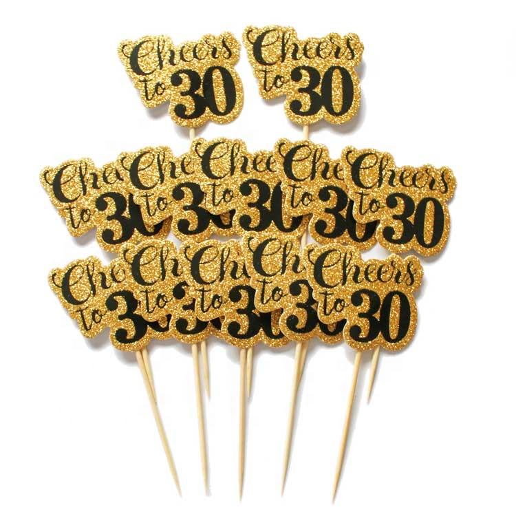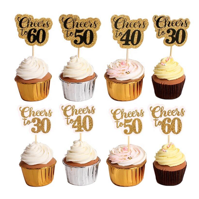 12pcs Cheers 30 40 50 60 Year Old Cupcake Topper Gold and Black 30th 40th 50th 60th Happy Birthday Party Decorations Cake Topper