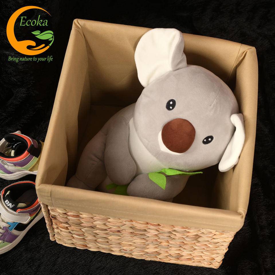 12x12 Eco-Friendly Natural Waterhyacinth Clothing Storage Baskets Folding Collapsible with Handles Fabric Bag